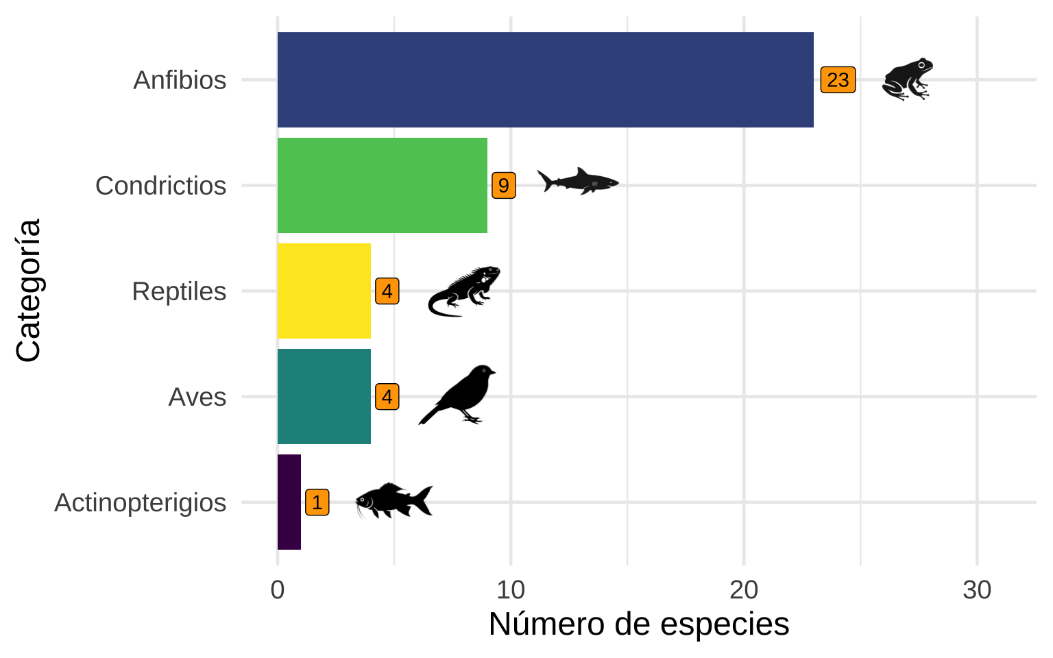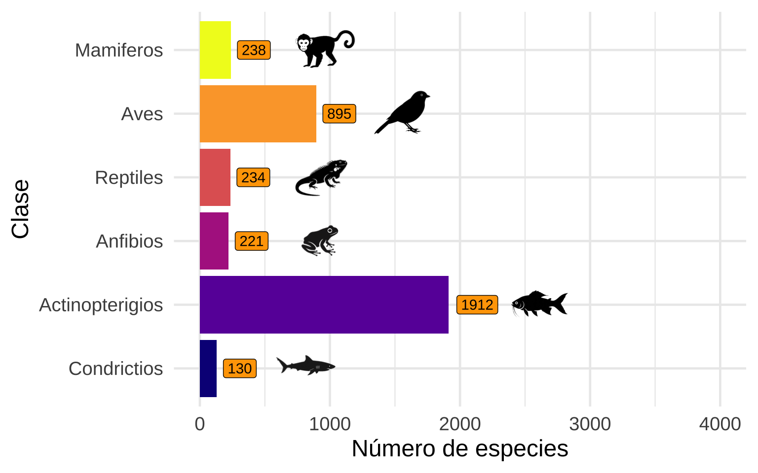 Número de especies de vertebrados en Costa Rica según datos de la UICN